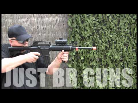AEG-Elektrisch. Es gibt drei Modi - SAFE, SEMI und AUTO. Im SAFE-Modus ist das Gewehr gesichert und erlaubt Ihnen nicht zu schießen. Im SEMI-Modus - jedes Mal, wenn der Auslöser gedrückt wird, wird ein Schuss abgegeben. Im AUTO-Modus - das Gewehr schießt im vollautomatischen Modus, während Sie den Abzug gedrückt halten. In dem herausnehmbaren Kunststoffmagazin können bis zu 30 Stück 6mm BB Plastik Rundkugeln eingefüllt werden. Energie: <0.5 Joule.